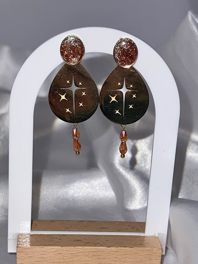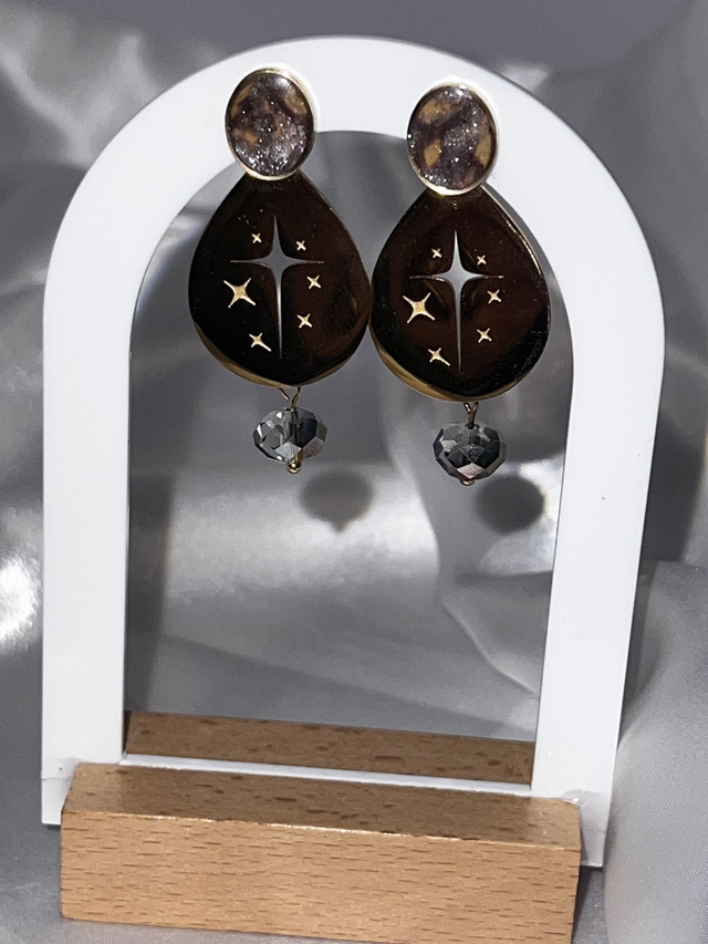 Boucles d'oreilles plateau en acier inoxydable et son cabochon serti d'argile polymère et finition résine, 2 coloris au choix