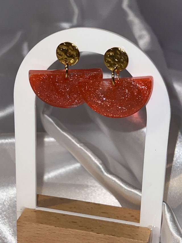 Boucles d'oreilles pendantes en résine colorées en rose et paillettes