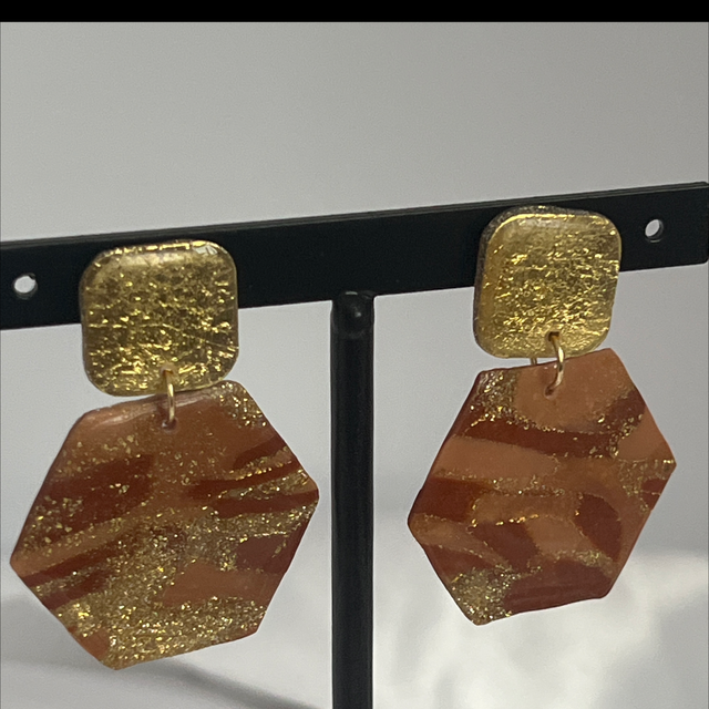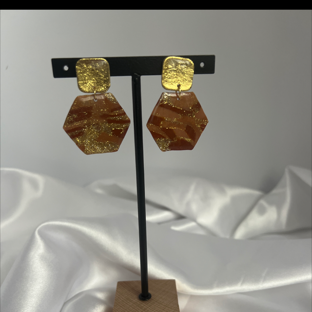 Boucles d'oreilles pendantes en argile polymère et finition en résine, apprêts en acier inoxydable