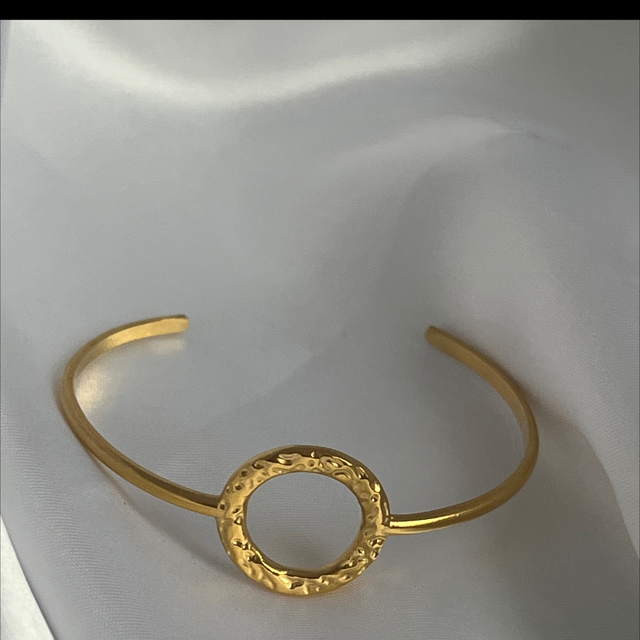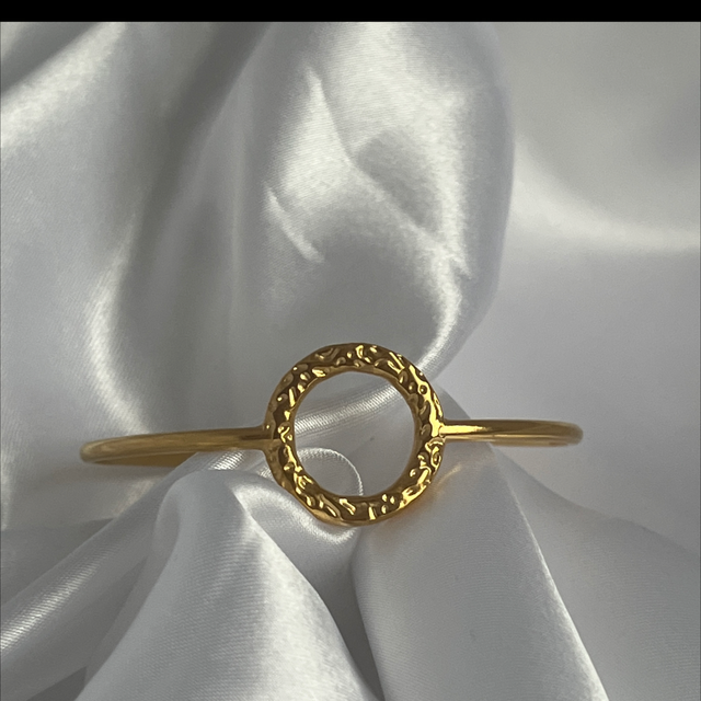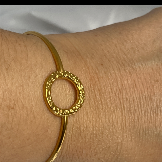 Jonc en acier inoxydable doré, réglable avec rond central martelé