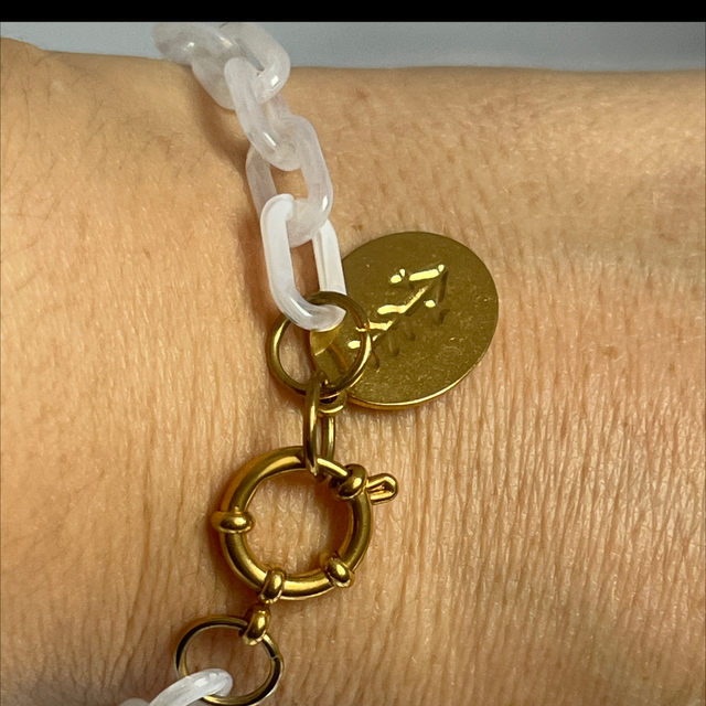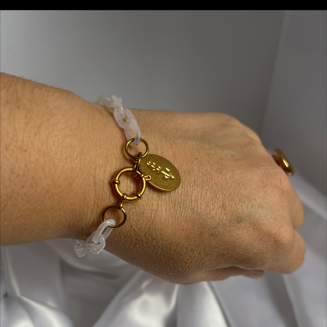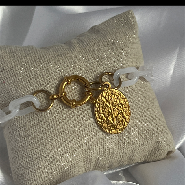 Bracelet chaîne acrylique blanc avec breloque en acier inoxydable