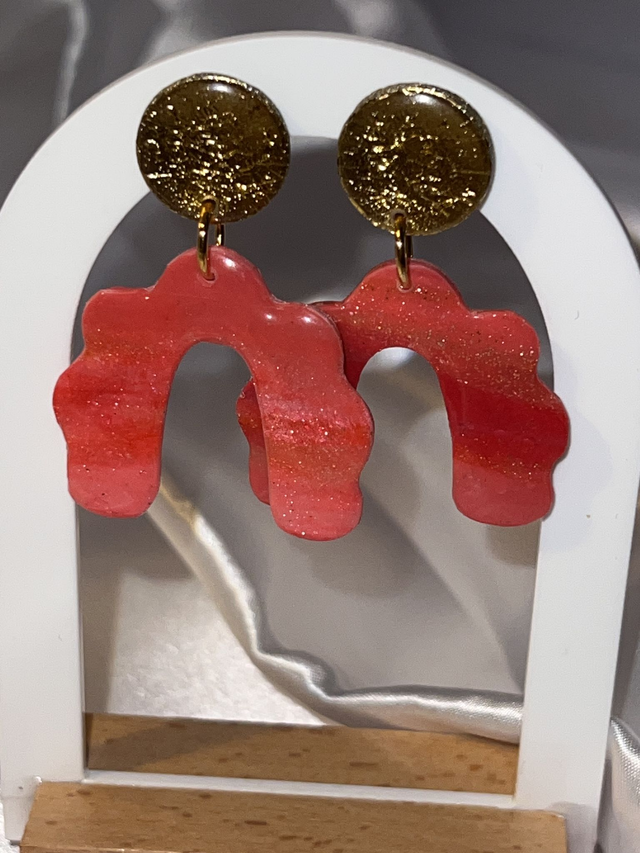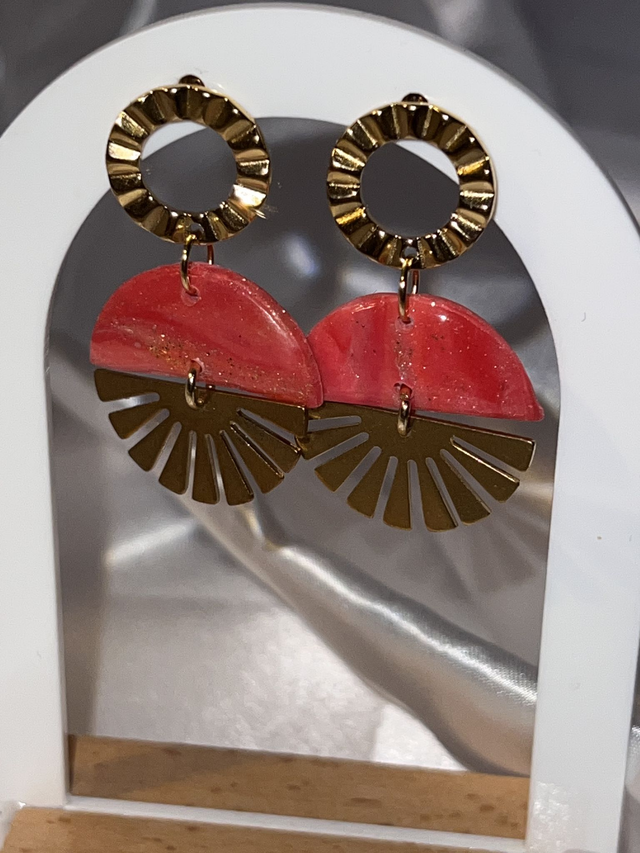Boucles d'oreilles pendantes en acier inoxydable et argile polymère finition résine