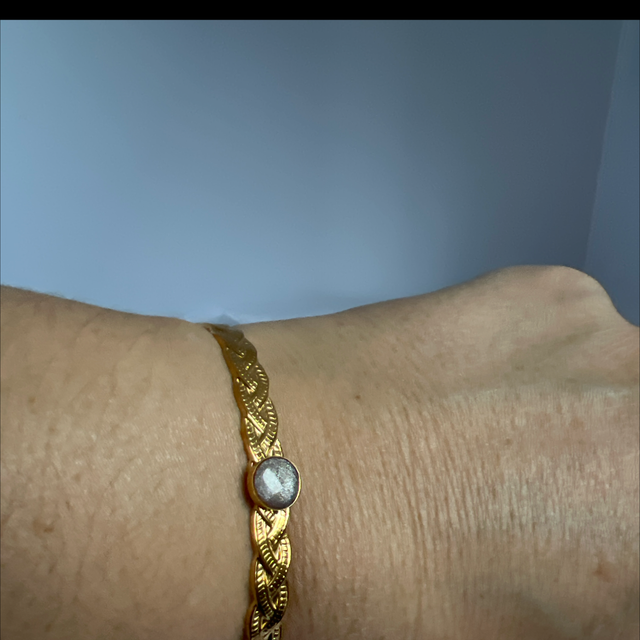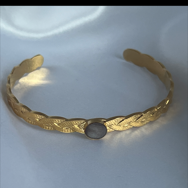Jonc torsadé en acier inoxydable doré, avec cabochon résine réglable
