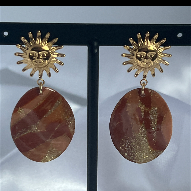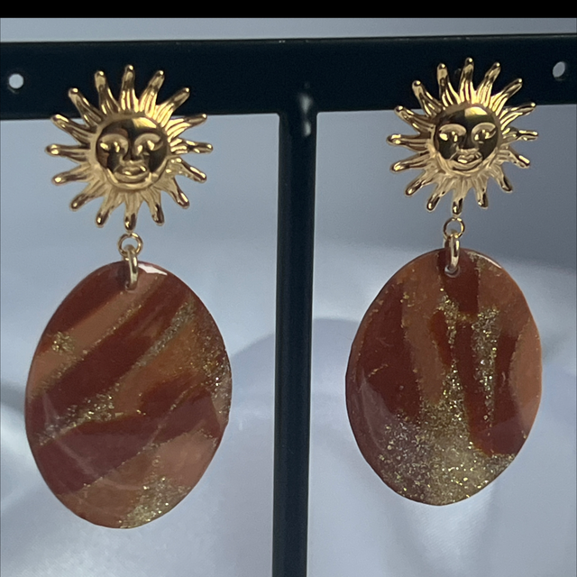 Boucles d'oreilles en argile polymère finition résine, apprêts en acier inoxydable