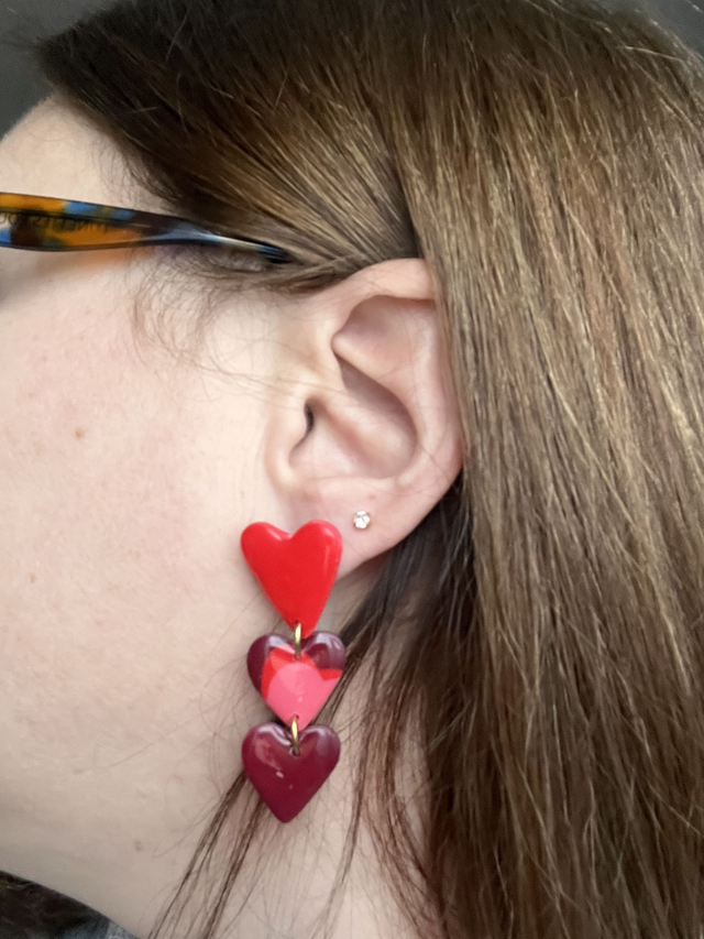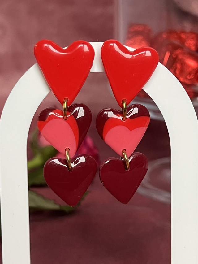 Boucles d'oreilles en argile polymère triologie de coeur avec une finition en résine