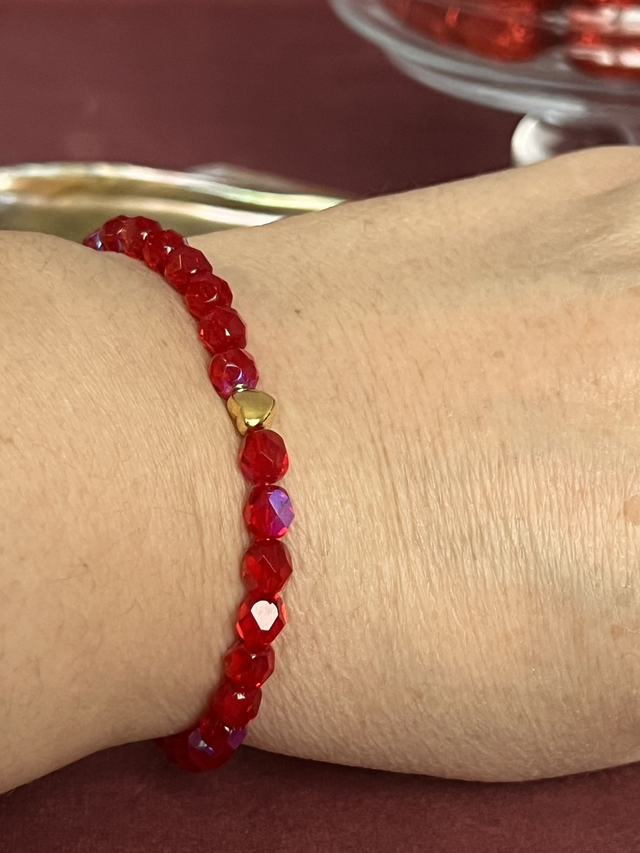 Bracelet perles facettées rouges et son intercalaire coeur en acier inoxydable.