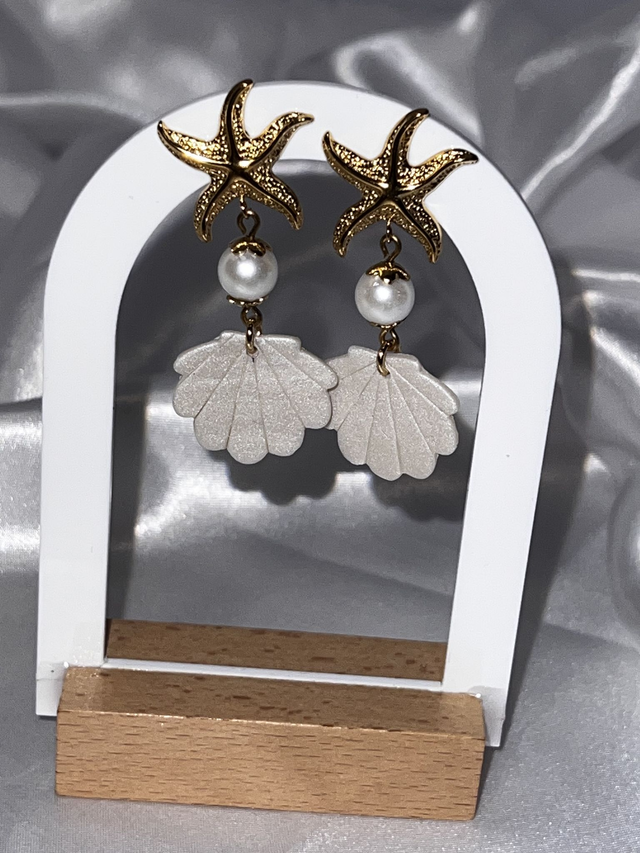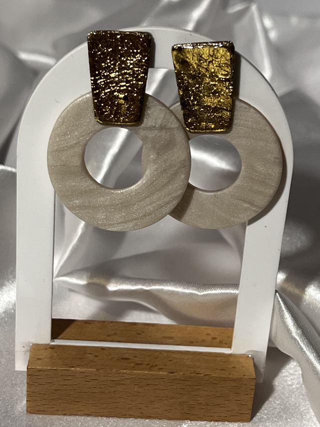 Boucles d'oreilles en argile polymère blanc/doré, différents coloris et formes à choisir selon vos envies!!!